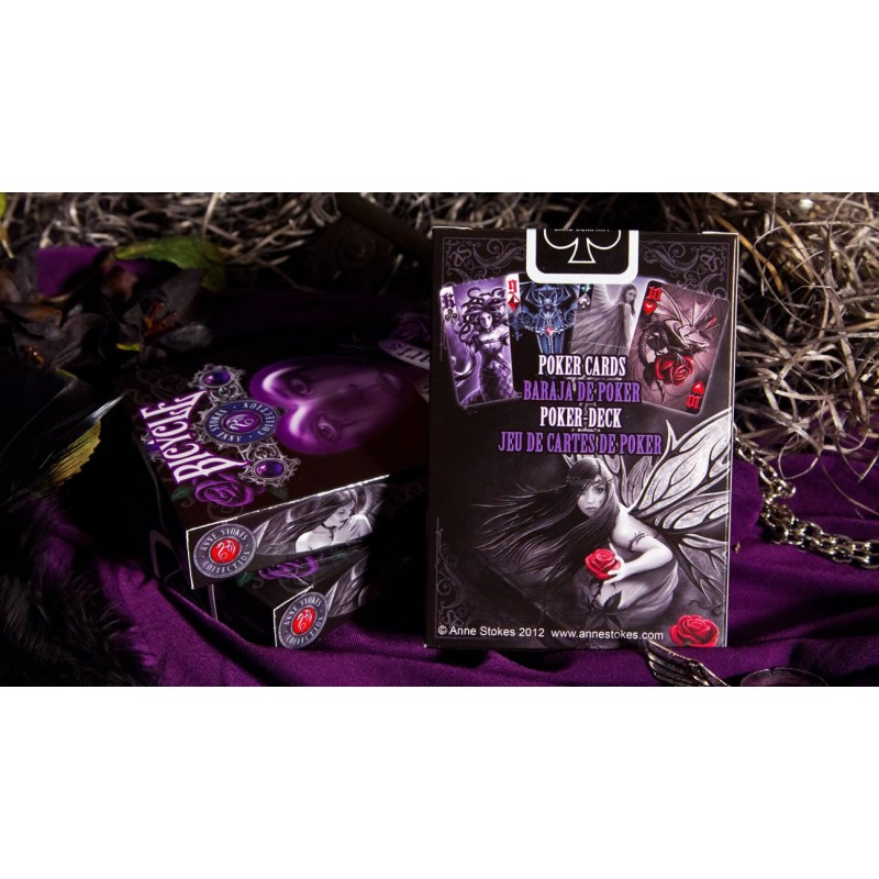 Jeu de cartes, sans bord blanc, qualité BICYCLE®, carton, étui carton+ cellophane extérieure, index standard marquées aux 2 coins. Avec un design original d'Anne Stokes
