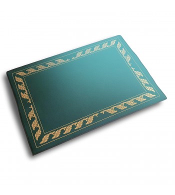 Tapis haut de gamme "drap de laine" format 50x70cm environ, vert, marquage or, avec galon.